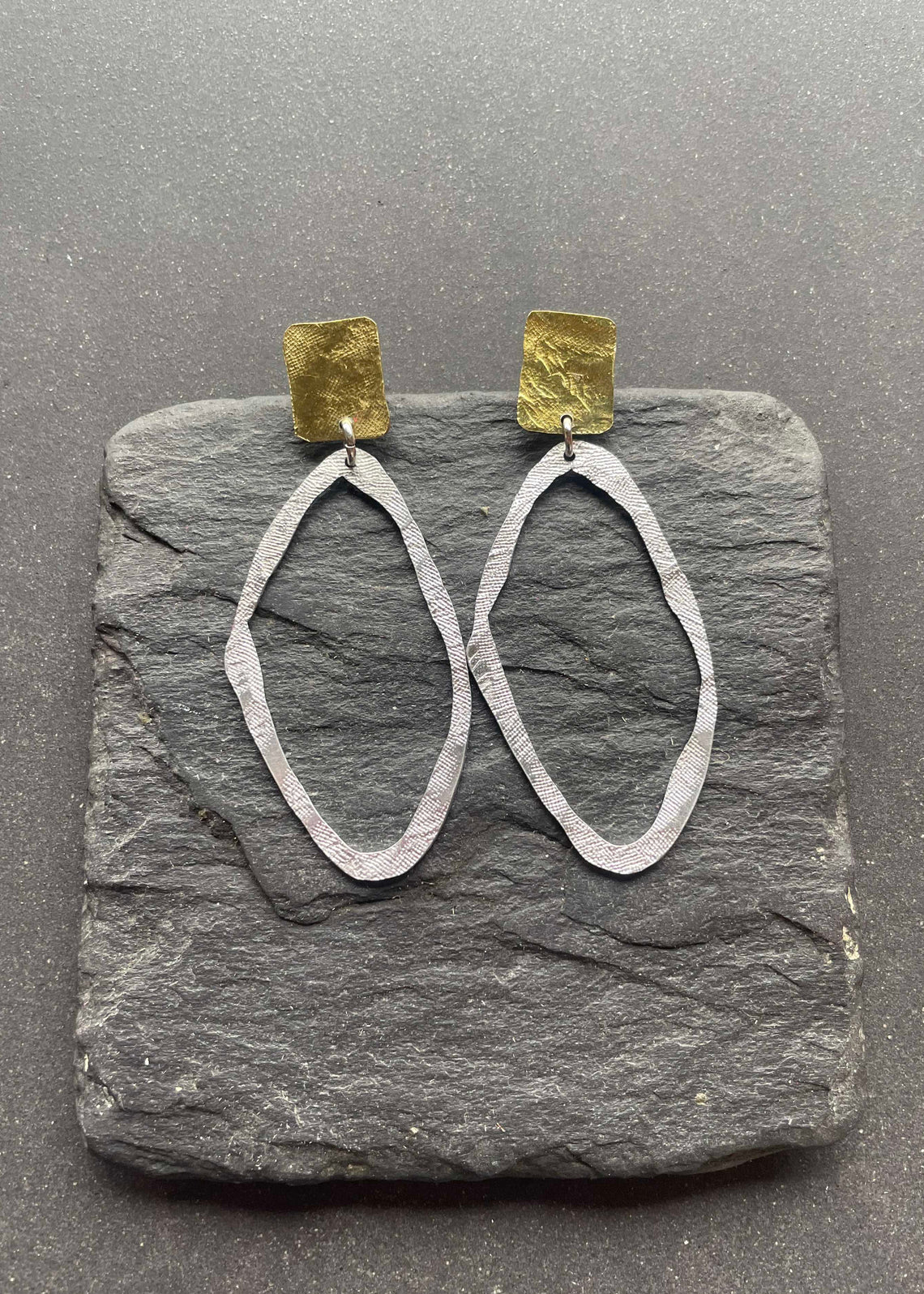 Bae earrings feature a beautiful textured mix of brass and aluminium with clean, delicate lines.