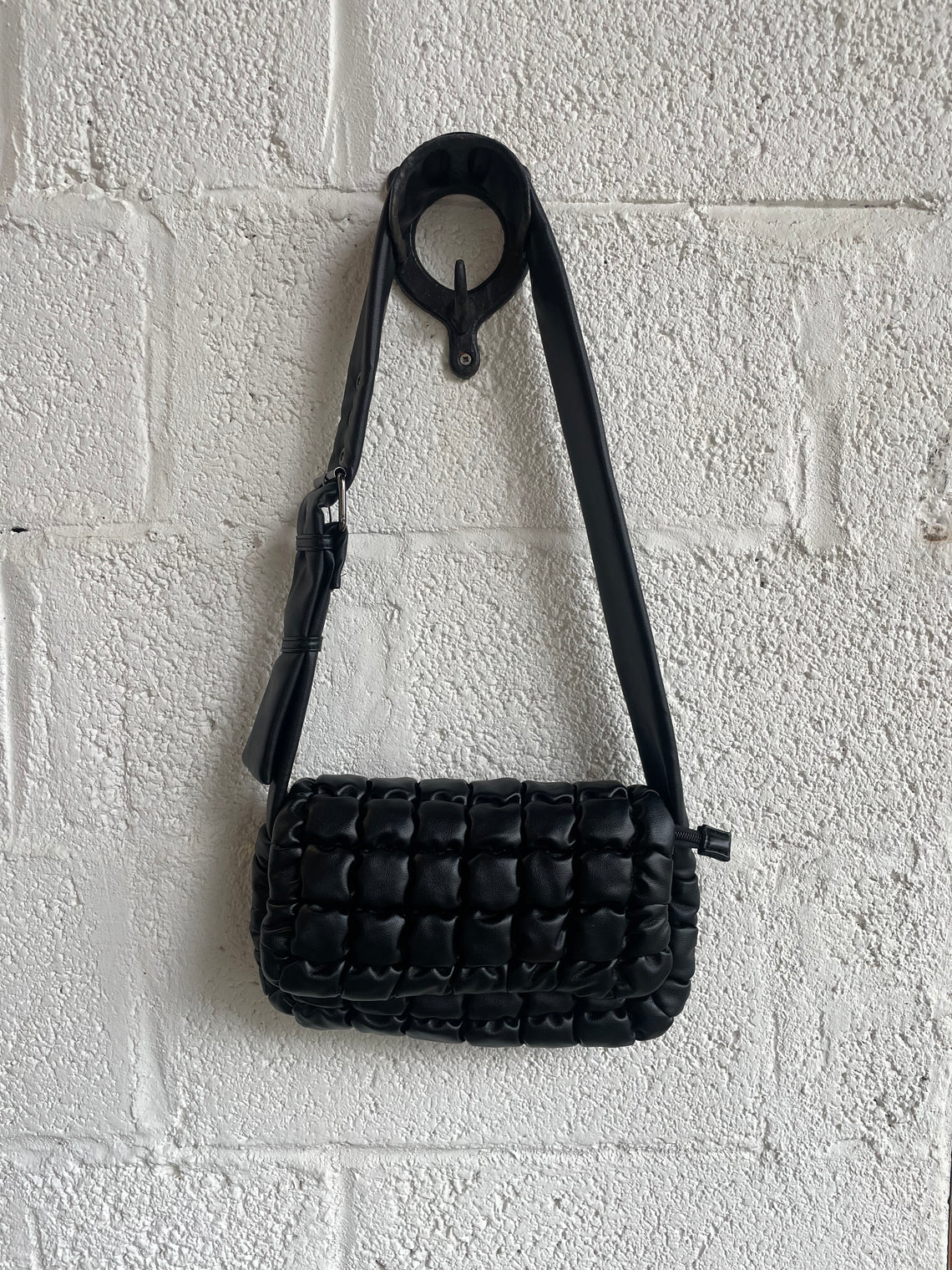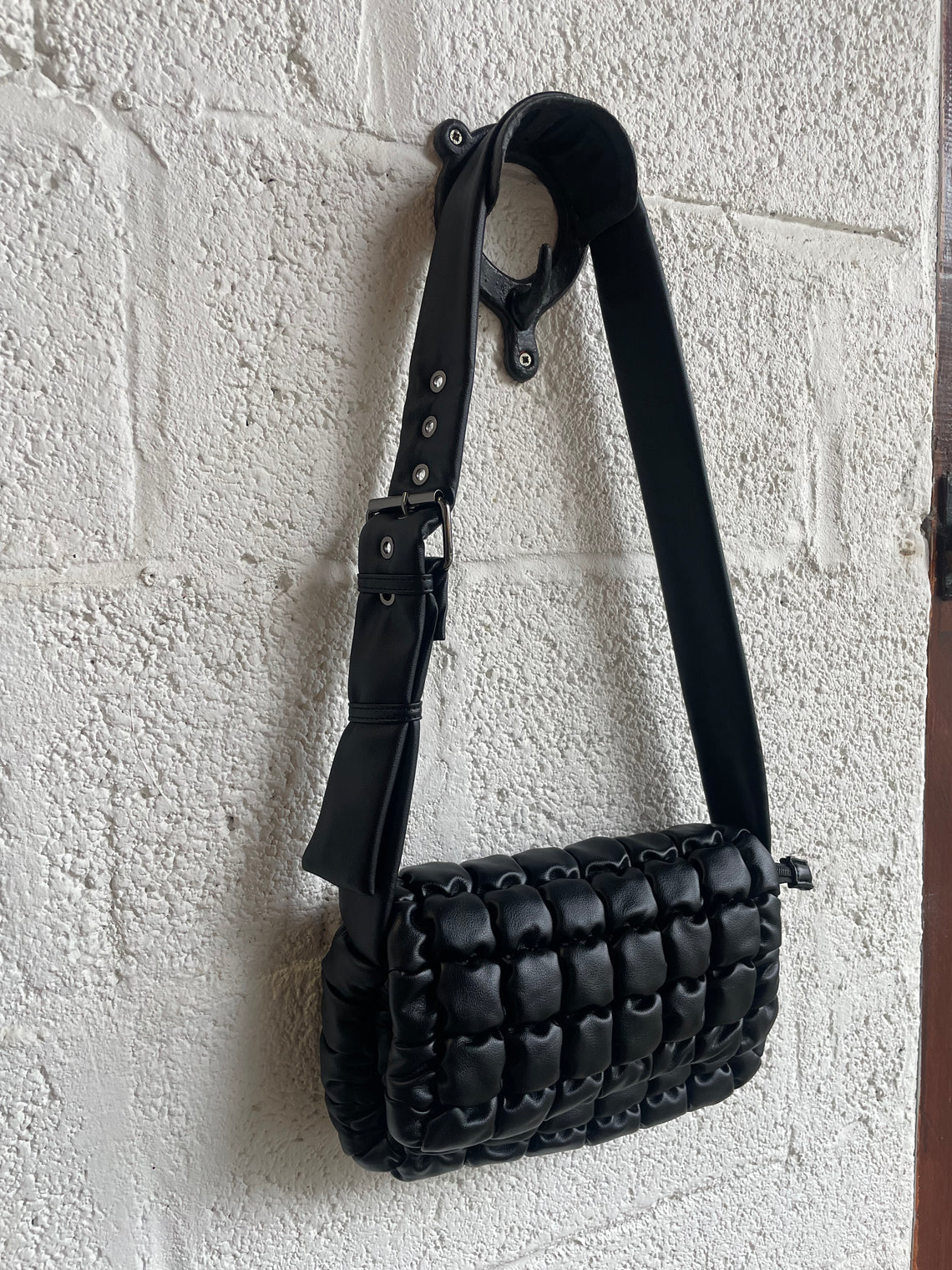 This bag has magnetic button closures and a zip, with an interior zip pocket.