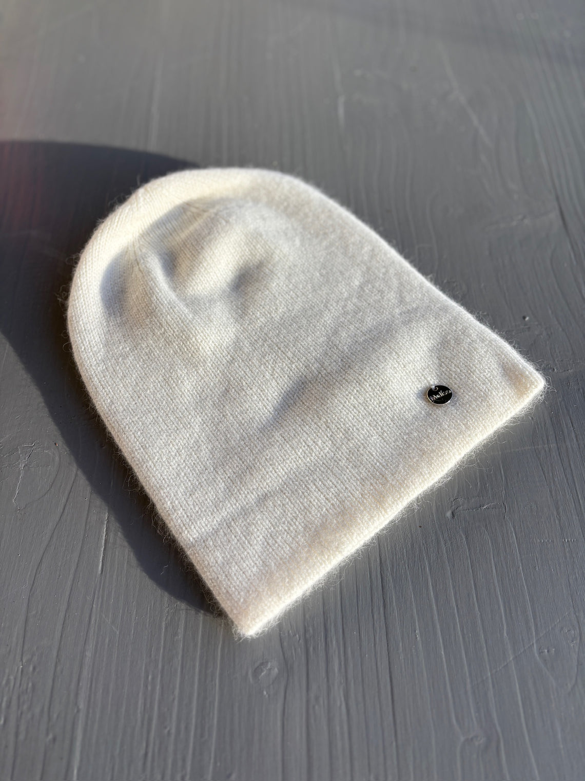 Soft and cosy, a fine ribbed knit in three colours: White, Sand and Haw.