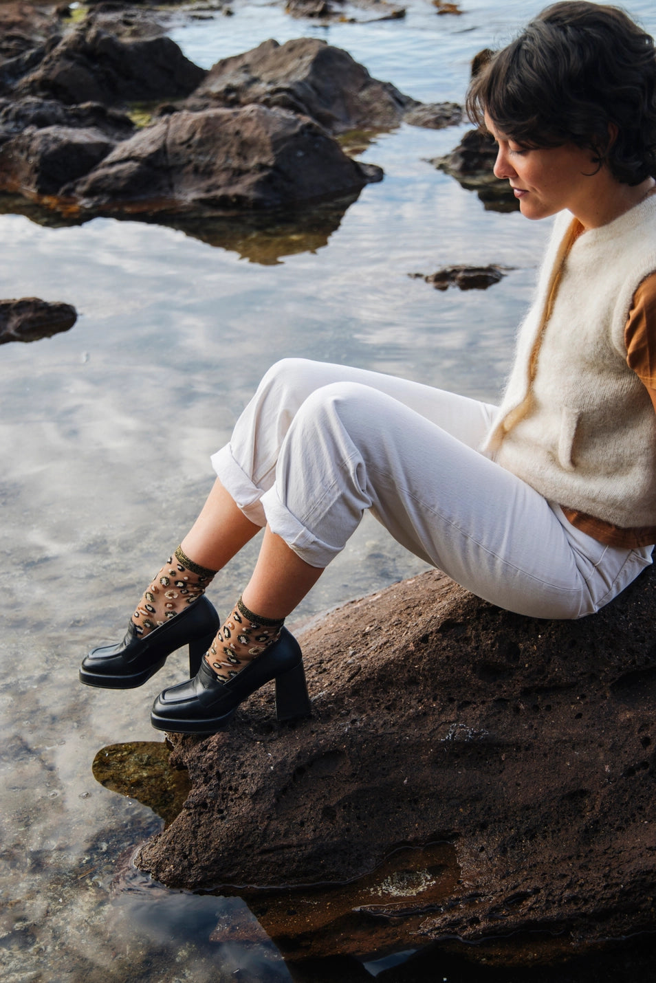 All in transparency with a hint of glitter, these leopard-style socks give a trendy effect to your outfits. In terms of look, its golden, brown and black shades go perfectly with dark pants and pretty pumps. All for a guaranteed wow effect!