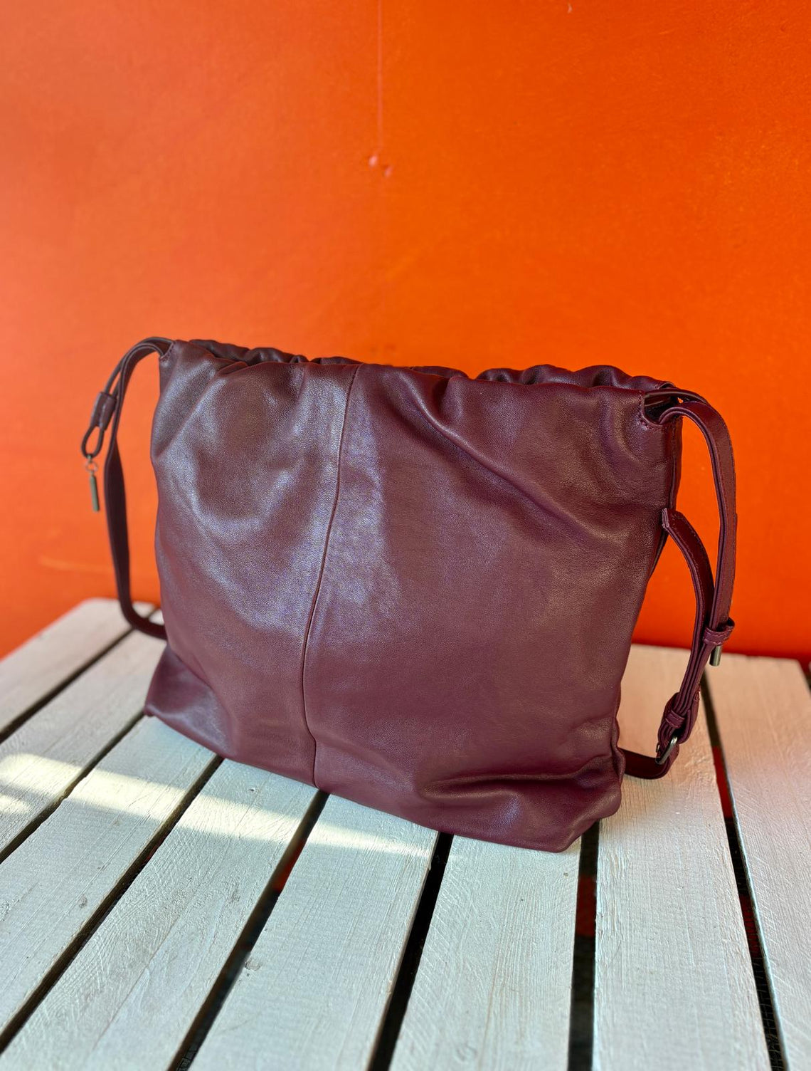 The Lara Bag is made from super soft leather and comes in two colours, black or plum.