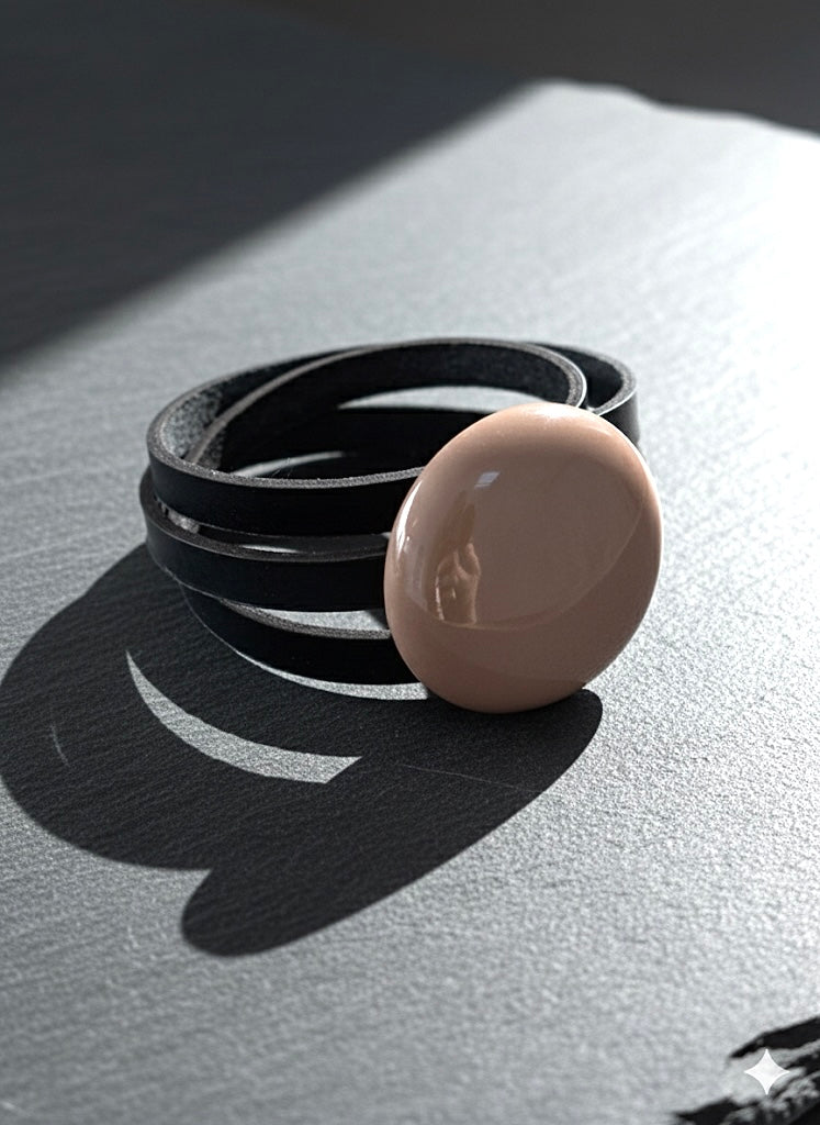 This cuff/neckalce is an accessory that can be worn with the interchangeable buttons, so you can play with a variety of colour combinations. Made of two layers of high quality spanish leather, each cuff is a unique hand-made piece.