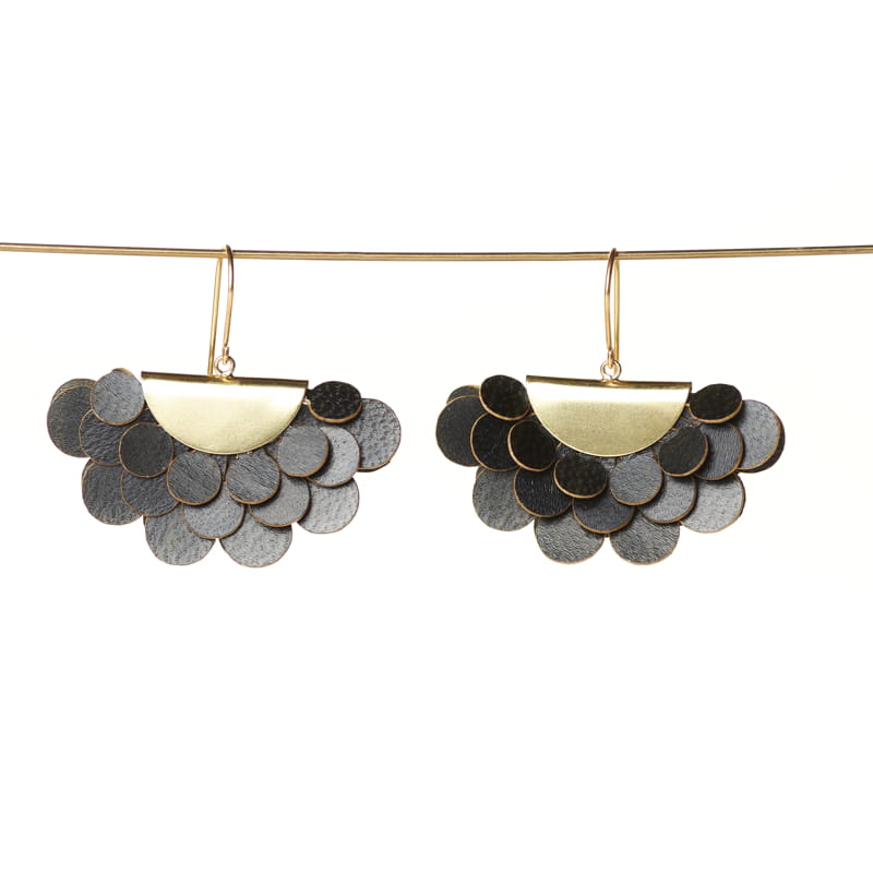 Beautiful and unique hand-made statement earrings from delicately hand-painted layered parchment and brass.These are made from recycled leather. They are light and comfortable to wear and are hypoallergenic.