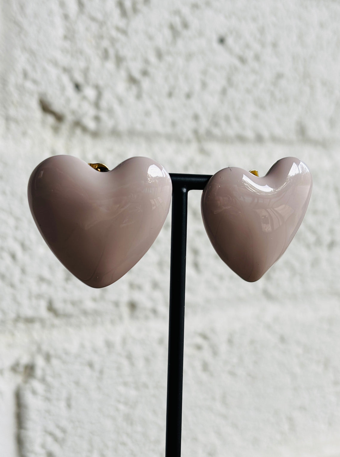 These big and beautiful heart earrings come in the softest pale taupe colour.