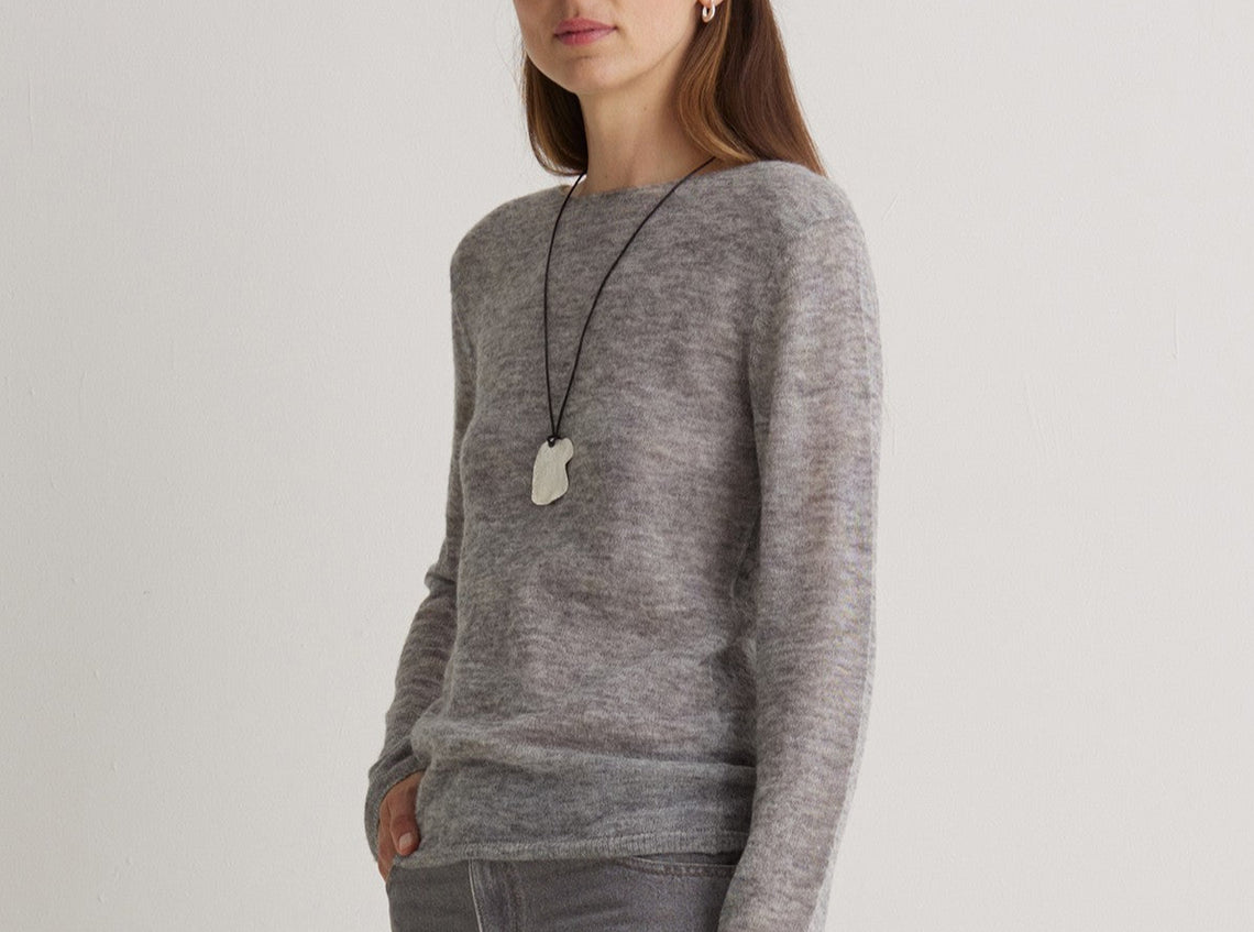 Thin bateau-neck sweater. Extra-fine alpaca and merino wool blend. Regular fit. Long sleeves.