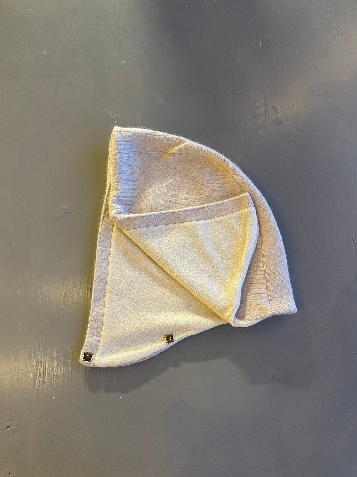 These are super soft, versatile hoods with fleece lining and button clasps.