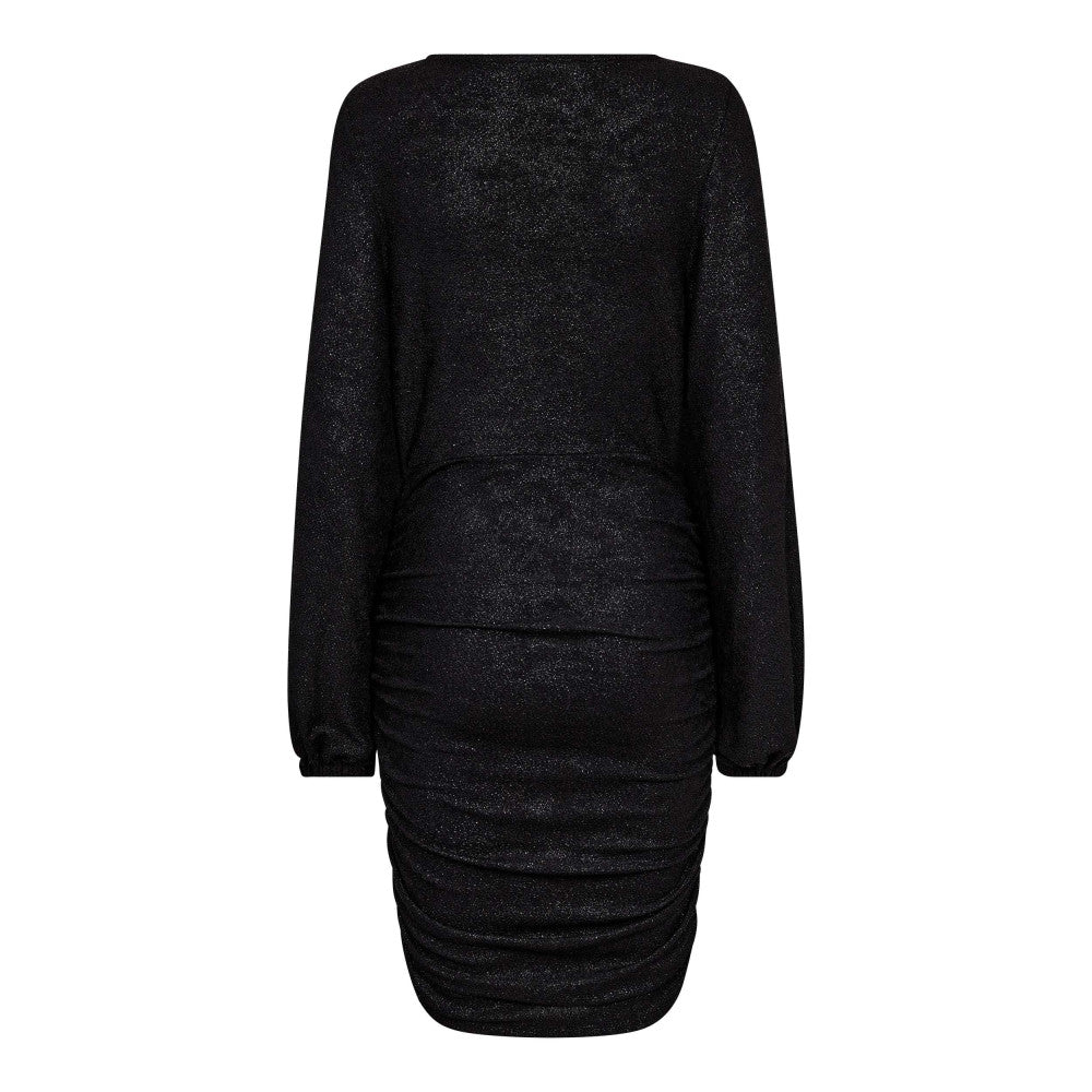 This black dress is super flattering with rouched material across the waistline and the skirt.