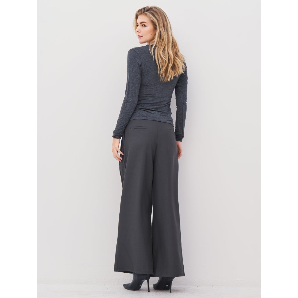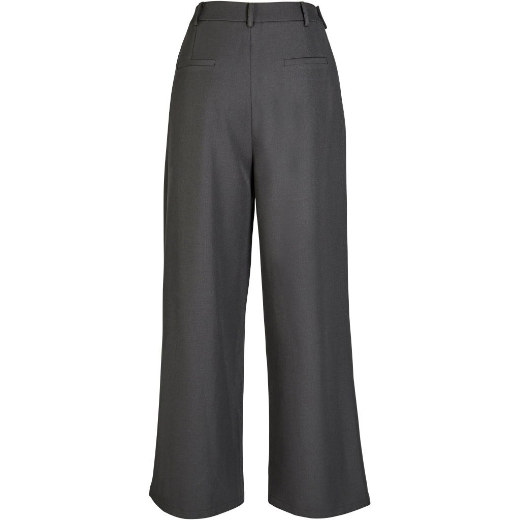 These trousers in grey have wide, straight legs and an elegant, tailored fit.