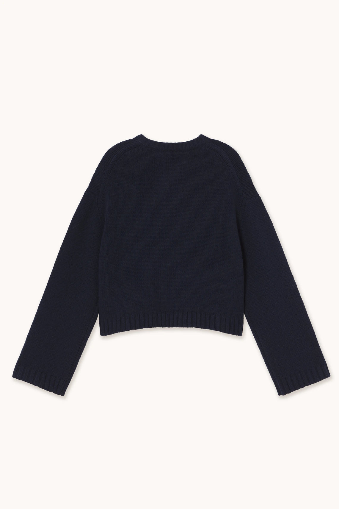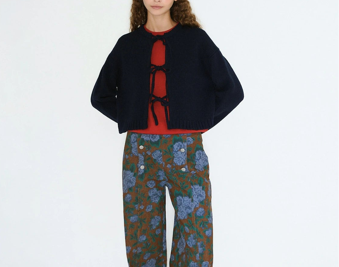 Crafted from warm merino wool in a navy base, this cardigan is a refined option for seasonal layering.