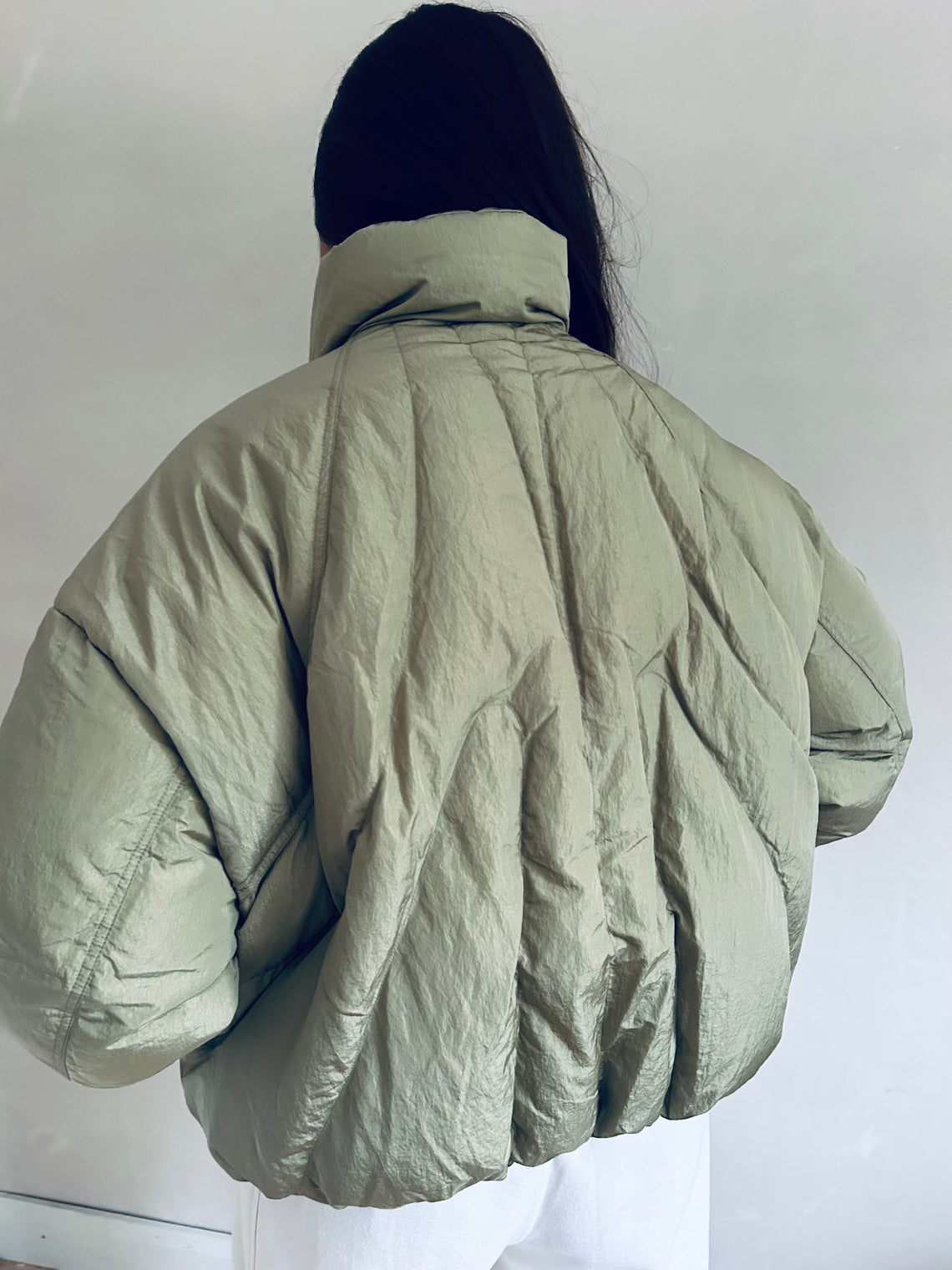 This gorgeous bomber comes in a soft pale green.