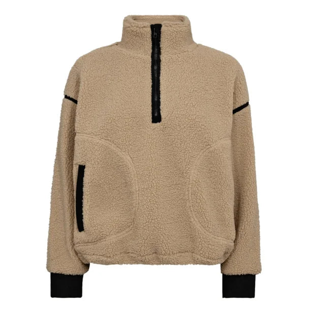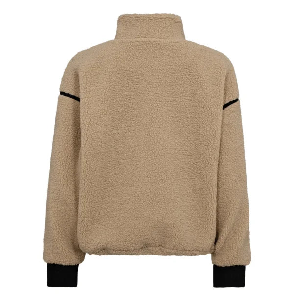 Madin Fleece Anorak has a high collar and a zipper at the top.